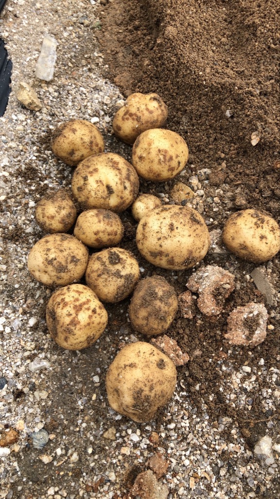 とは言っても初めてだったので何やら葉っぱが病気になってしまいました😭なんということでしょう。さすがに葉っぱが黄色くなってしまったので、渋々ですが収穫するしかありませんでした。じゃがいもは小さめでしたが、少しできてたのでよかったです😊次回はおっきいじゃがいも作るぞー😆