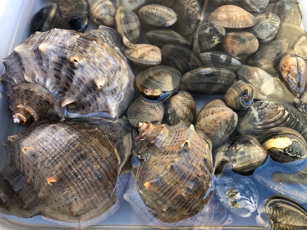 今日はそこそこの大きさのアサリも獲れて、大きいニシ貝も発見したので持って帰って初めて食べてみました‼︎バター焼きにしたので味は美味しかったです😊