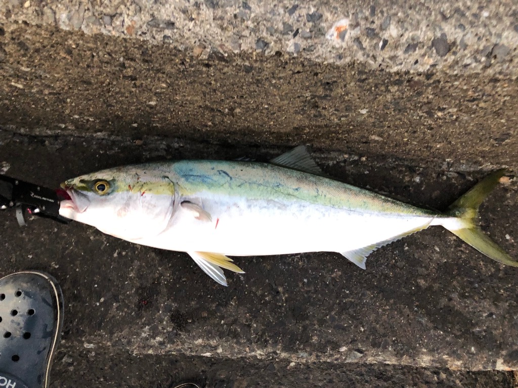 釣り上げるとちょっと小さいヤズでしたが、今日の晩ご飯の刺身になりました😊