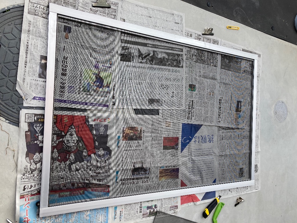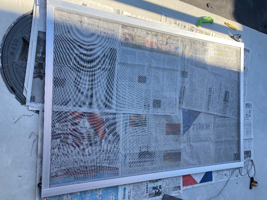 取りかかろうと網戸を外そうと思ったらまずそれが外れないwwあずりながらなんとか取れてやっと張り替え開始✊🏻