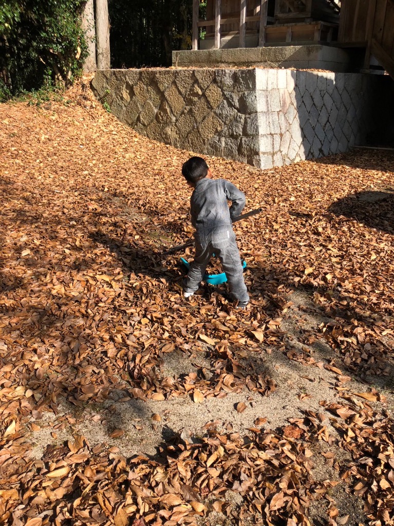 イチョウの葉っぱもだいぶ落ちたので落ち葉を集めて焼き芋をしました。
